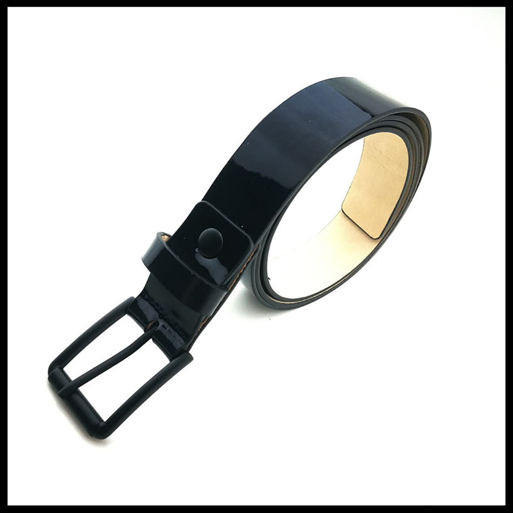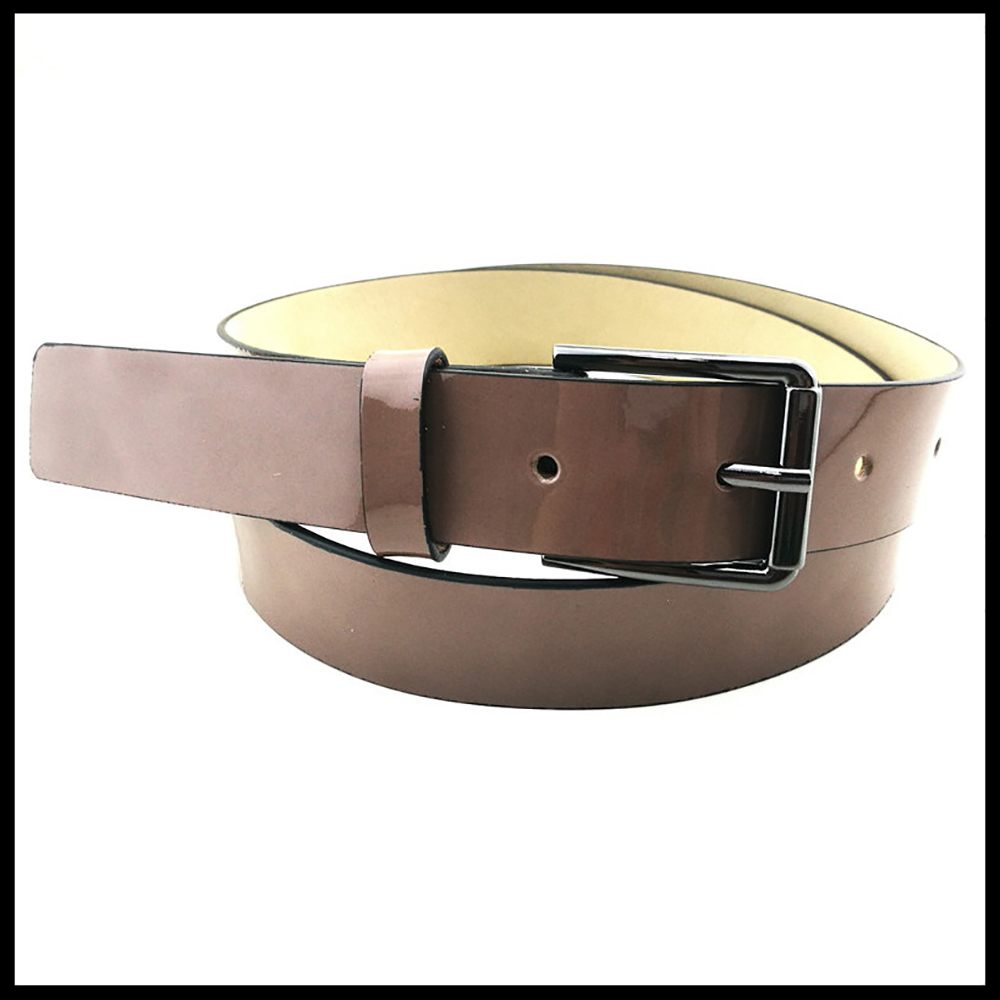 女款鏡面羊皮配米色真皮底腰帶